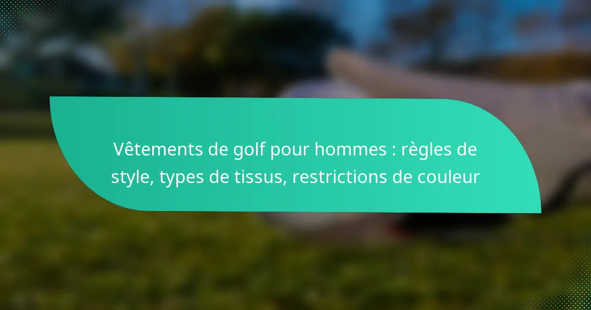 La tenue de golf pour hommes est essentielle pour allier confort, fonctionnalité et style tout en respectant le code vestimentaire du parcours de golf. Les éléments clés incluent des chemises à col, des shorts ou pantalons ajustés, et des chaussures appropriées, tous fabriqués à partir de tissus respirants et durables pour améliorer les performances. De plus, les joueurs doivent être conscients des restrictions de couleur qui peuvent varier selon le club, favorisant souvent des teintes traditionnelles pour maintenir une apparence soignée sur le parcours.